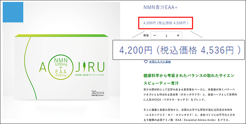※青汁原料とCICA・NMN・EAAの組み合わせとして